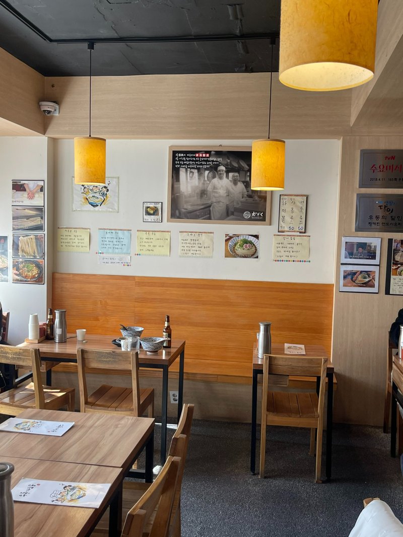 식당 규모는 생각보다 아담합니다. 테이블 수가 많지 않아 아늑하면서도 약간 비좁다는 느낌이 들 수 있지만, 그만큼 집중해서 음식을 즐기는 분위기가 형성되어 있습니다. 일본 현지 우동 가게를 연상시키는 소박한 인테리어로, 과한 장식 없이 음식에 집중할 수 있게 꾸며져 있습니다. 특히 매장 한편에는 매일 생면을 직접 제면하는 공간이 마련되어 있어, 신선한 면발에 대한 신뢰가 생깁니다. 1인석도 있어서 혼밥하기에도 부담 없고, 일본인 스탭이 근무해 더욱 현지 분위기가 느껴집니다. 저희가 식사하는 동안에도 계속해서 손님들이 들어왔는데, 그만큼 동네 주민과 직장인들 사이에서 입소문이 난 곳이라는 걸 느낄 수 있었습니다.