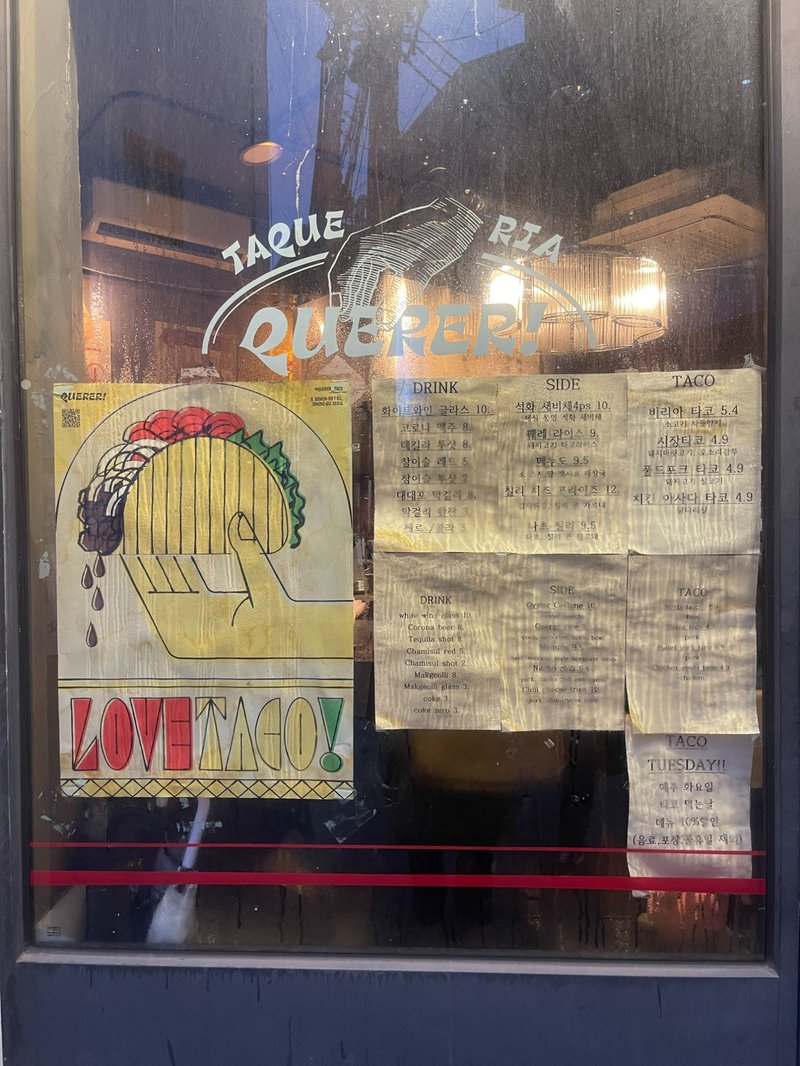 신설동역 인근 골목 안쪽에 특별한 타코 바가 하나 있습니다. 바로 'Querer(꿰레)'인데요, 단순히 타코를 파는 식당이 아닙니다. 스페인어로 '원하다'라는 뜻을 담고 있는 이곳은, 진짜 멕시칸 음식을 원하는 사람들이 모이는 공간입니다.